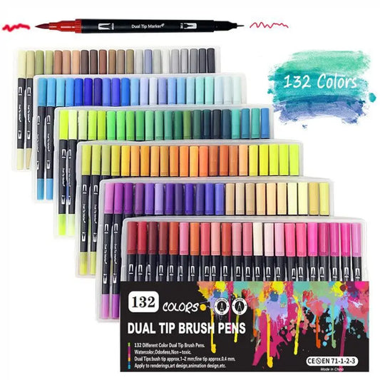 12-132 Colors Dual Tip Watercolor Brush Pen Kids Adults Artist Fine Point Coloring Markers Art Supplies for Artist